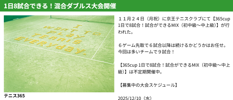 テニス365大会募集一覧はこちら